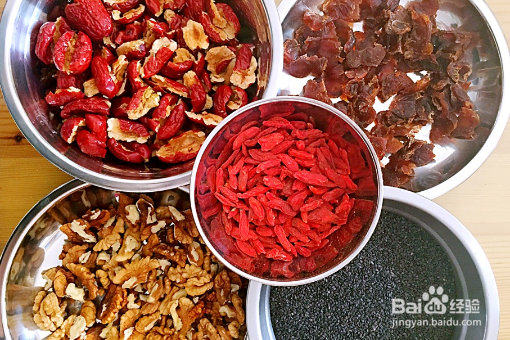 [图]2/14把核桃仁炒熟、红枣去核、枸杞晾干、桂圆肉珠艺裕沥水晾干、黑芝麻炒熟。