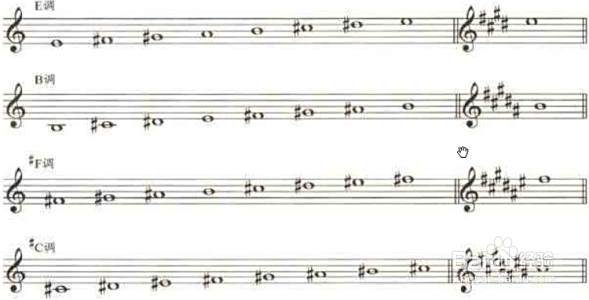 音记号的线或间表示的音高等于用黑键弹出来的声音。用类似的方法同样可知其余黑键弹出的