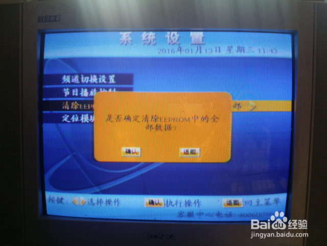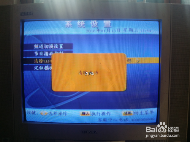 按两次确认键后会出现“清除成功”的提示,然后按退出键退出菜单键,回到电视画面。