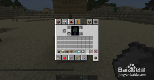 我们测试一下这个红石商店的效果。如图,物品栏里有10个铁锭。