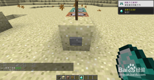 接着我们打开第三个命令方块,输入give @p diamond 1。