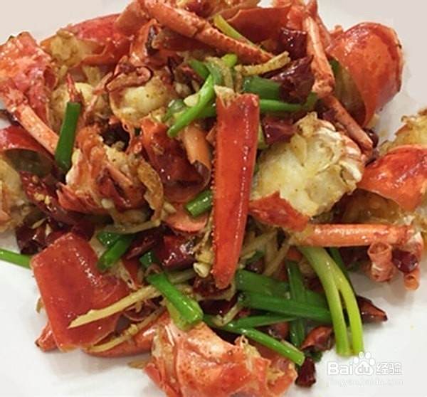 红辣椒炒龙虾, 放上一点香葱,颜色搭配成了鲜明的对比,色香味具全,一口吃下不想停!