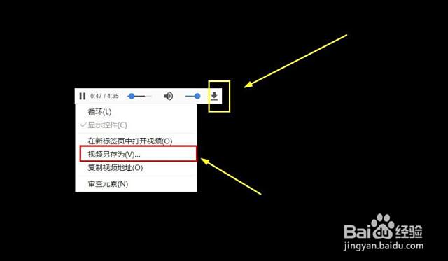 8、音乐进入播放页面,右击播放条,点击“视频另存为”。或者点击播放条右侧的“下载”图标。