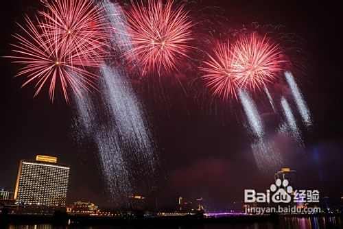 当然,构图也很重要,将一束烟花完整的纳入镜头中还是比较有必要的。推荐使用相机的广角端拍摄,画面中的某些部分可以留给城市建筑作为衬托,不要都是单调的黑色天空